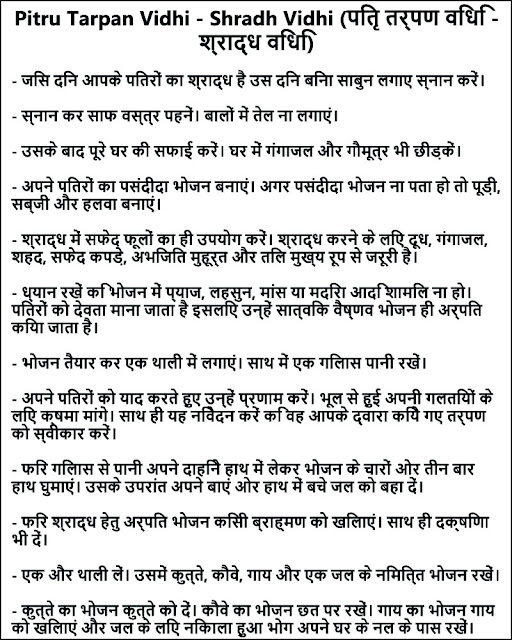 Pitru Tarpan Vidhi - Shradh Vidhi (पितृ तर्पण विधि - श्राद्ध विधि)